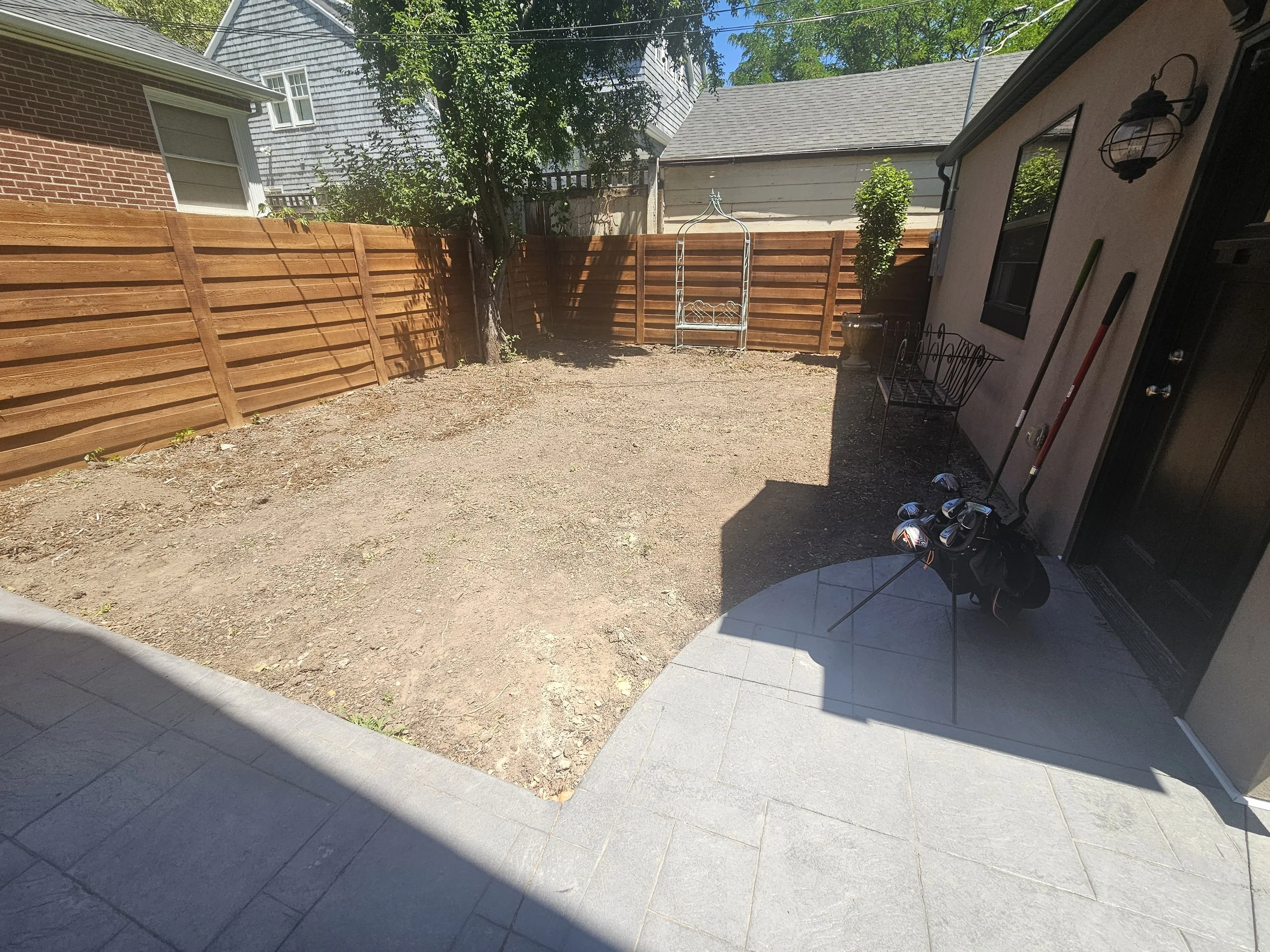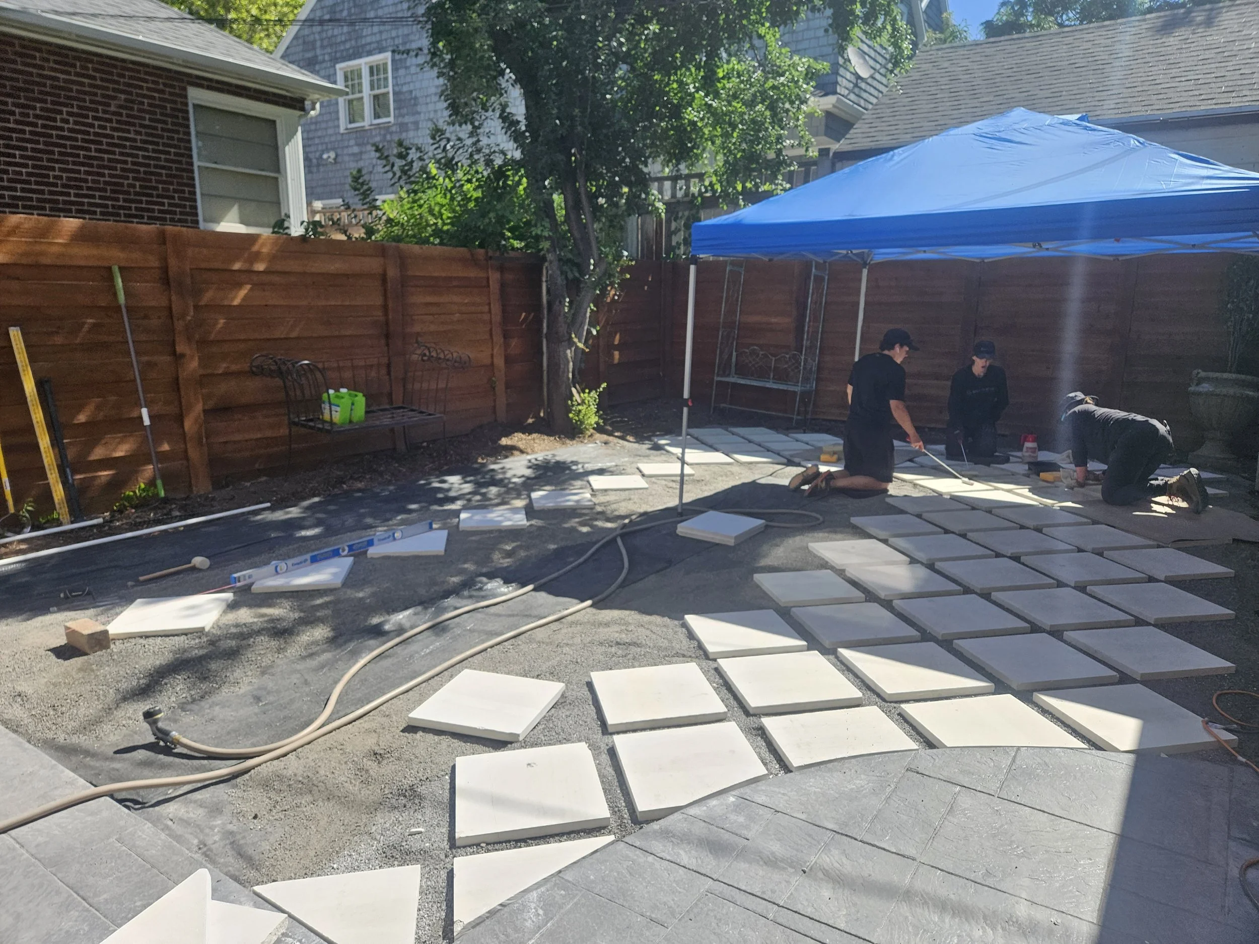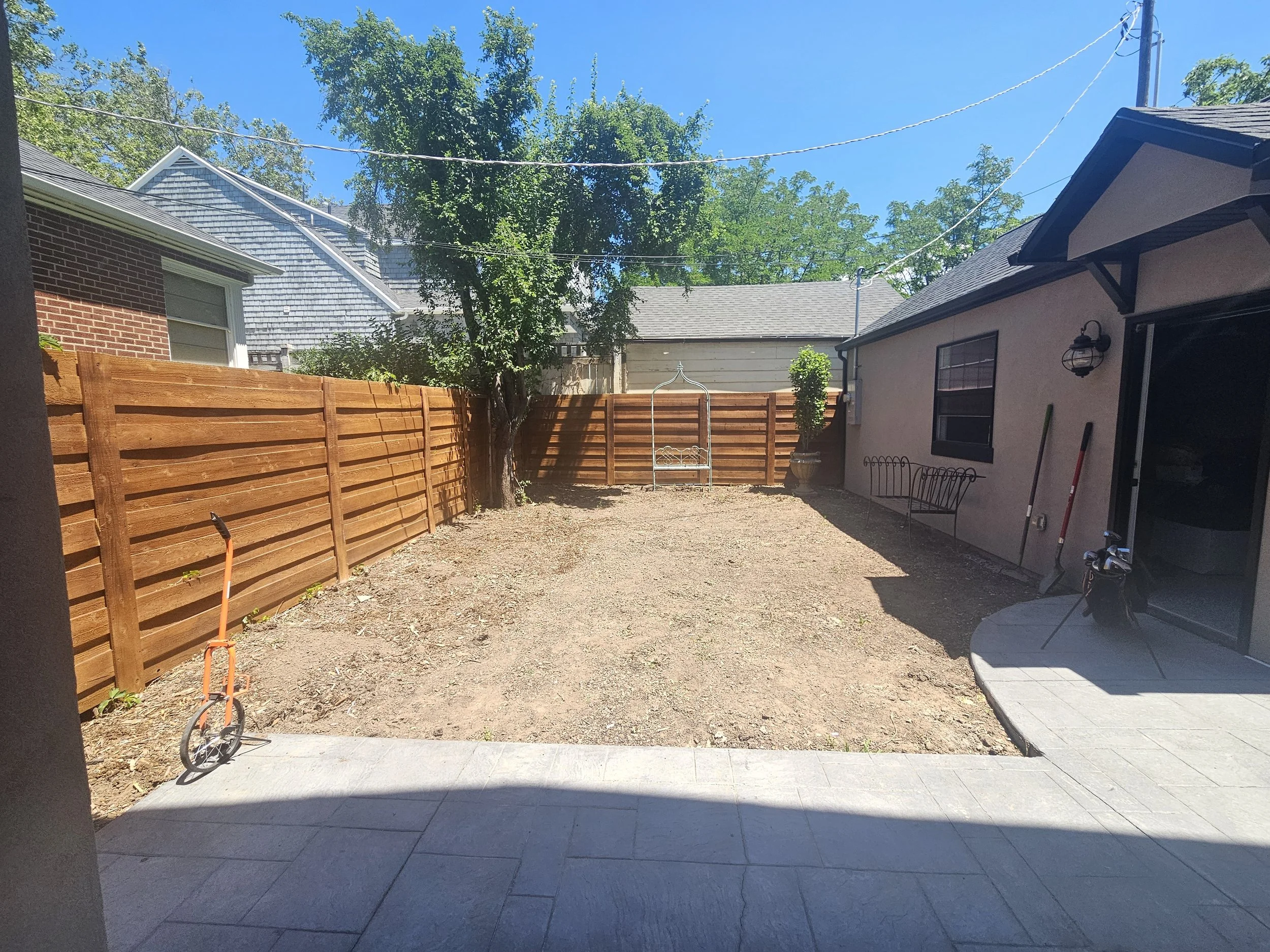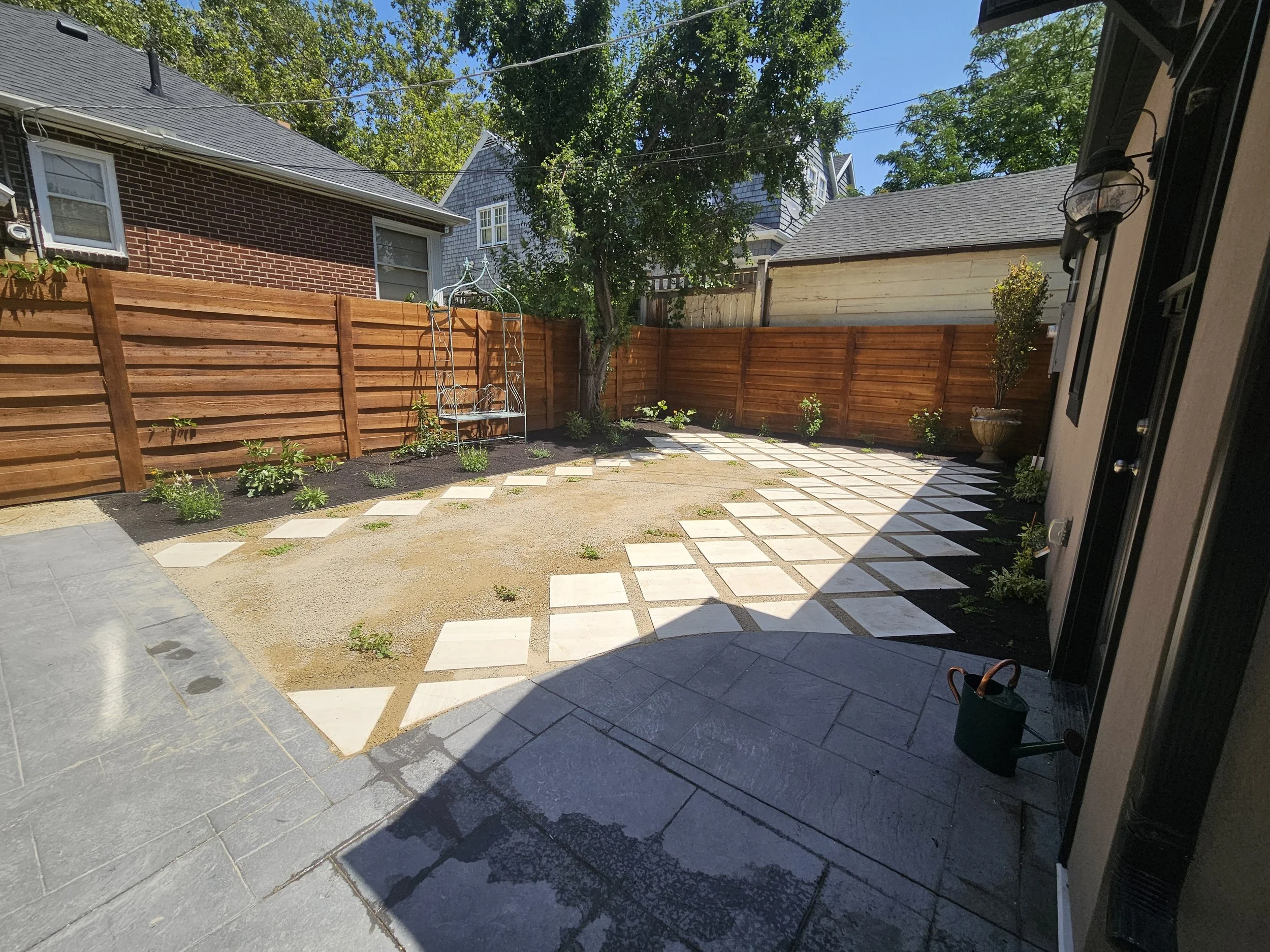 Take a look at this backyard that we transformed from a dry dirt patch to a beautiful, low-water European outdoor space water-wise lawn flip we did in Salt Lake City, Utah.
